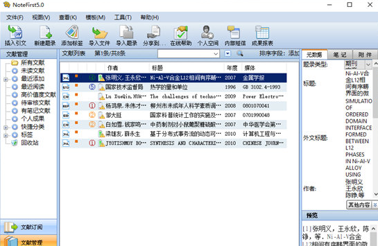 "Notefirst文献管(👨)理(💭)软件(🤞)"是(🌹)一款(📏)专为(wéi)学术(🐿)研(yán)究(jiū)者、学生等群体设计的(de)文(😋)献(😁)管理工(💑)具。其以强大的文献(xiàn)数据(👰)库为支撑,提(🌷)供(gòng)了文献检索(🗞)、管理、分析(🛵)和共享等(💟)全方位的服务,通过智能化的方(🌅)式,极(jí)大地提(tí)升了用户在进行学术研究和论(🌨)(lùn)文写作(🐩)过(guò)程中的效(📉)率。