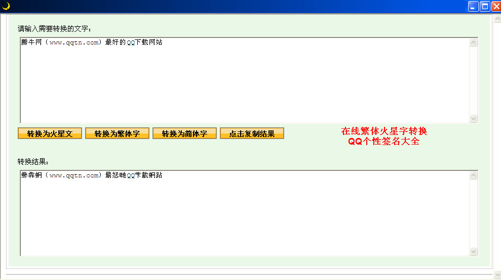 2、分(🚼)享便捷:支持(chí)一鍵將(jiāng)轉換(🏑)後的火星(🆚)文分(🐠)享至QQ、微信等社(shè)交平台。